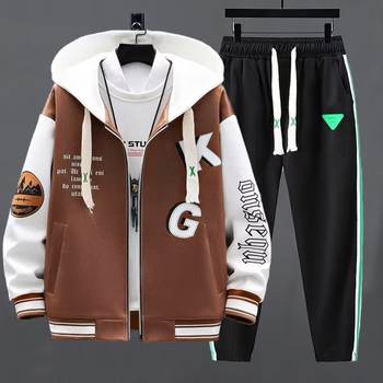 Men’s Cotton 2 Piece Set: Hooded Jacket & Harajuku Baseball Trousers – High Quality Fashion Outfit