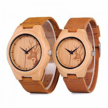 Wooden Watch with Soft Brown Leather Strap for Couples and Lovers